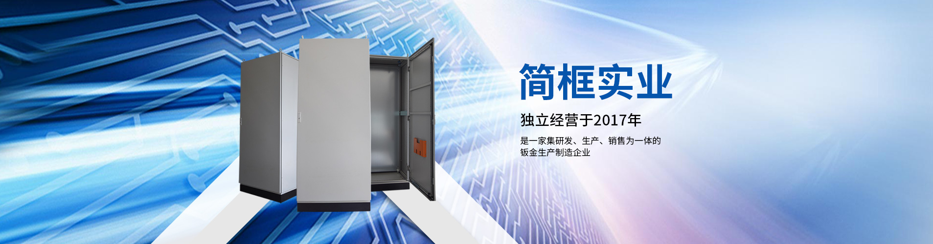 上海簡框實業有限公司獨立經營于2017年,是一家集研發、生產、銷售為一體的鈑金生產制造企業,產品主要涉及仿威圖機柜(又稱:九折機柜),控制箱,操作臺,不銹鋼機柜,等中高端鈑金產品。其產品被廣泛應用于工業自動化、智能制造、工業4.0等領域。